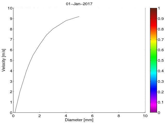 Przebieg roczny Średnie dobowe widmo wielkości i prędkości opadania hydrometeorów na podstawie pomiarów Disdrometrem OTT Parsivel.